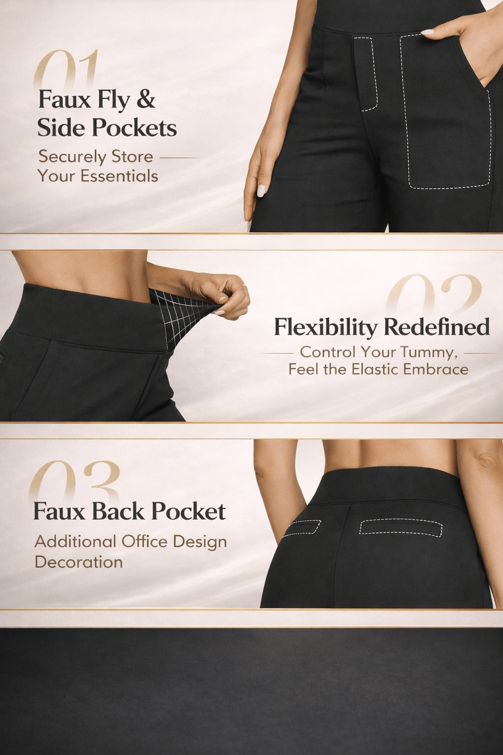Not at all. The ultra-stretchy fabric moves with your body but holds its shape, even after sitting all day or repeated washes.